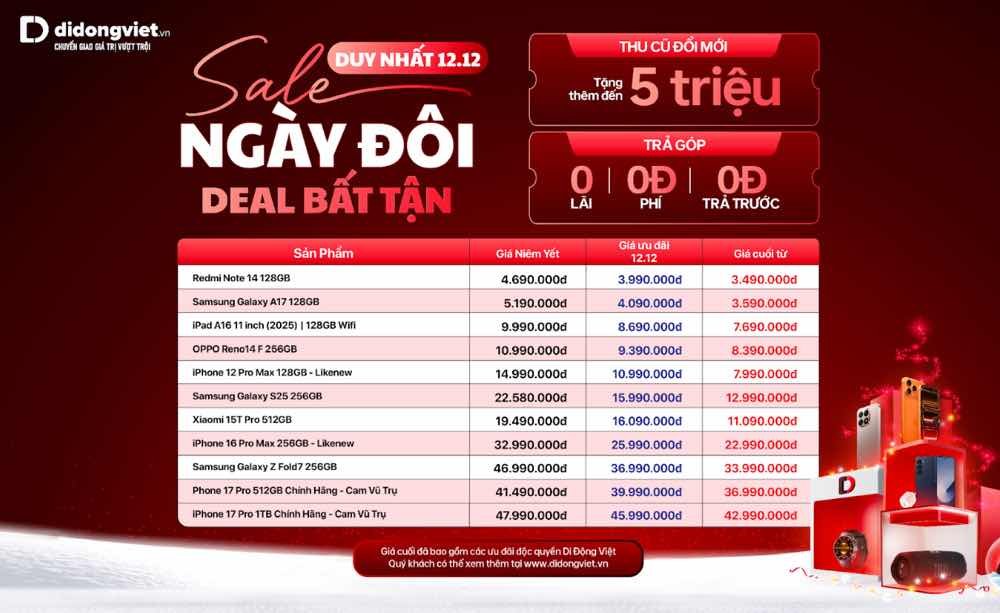 Tại hệ thống Viện Di Động, lượng khách hàng đến tham quan và mua sắm tăng mạnh từ đầu tháng 12/2025. Đại diện hệ thống cho biết, sức mua điện thoại LikeNew (đã qua sử dụng) tăng khoảng 52% so với cùng kỳ tháng trước.